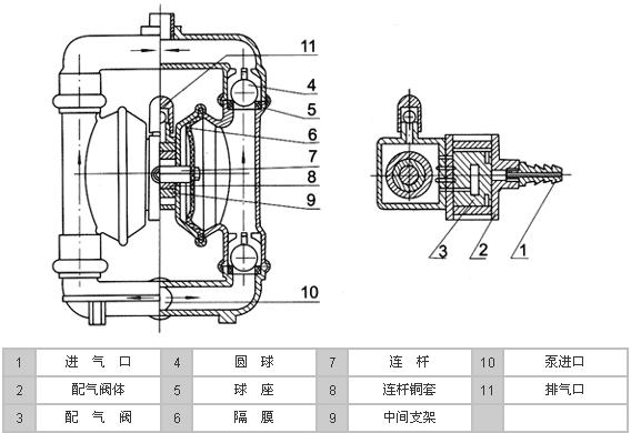 QBY-50氣動隔膜泵是為目前國內最新穎的一種泵類,結構簡單、拆修方便、送液穩定、振動小、噪聲低、自吸能力強、輸送液體粘度高,具有自吸泵、潛水泵、屏蔽泵、泥漿泵和雜質泵等輸送機械的許多優點。