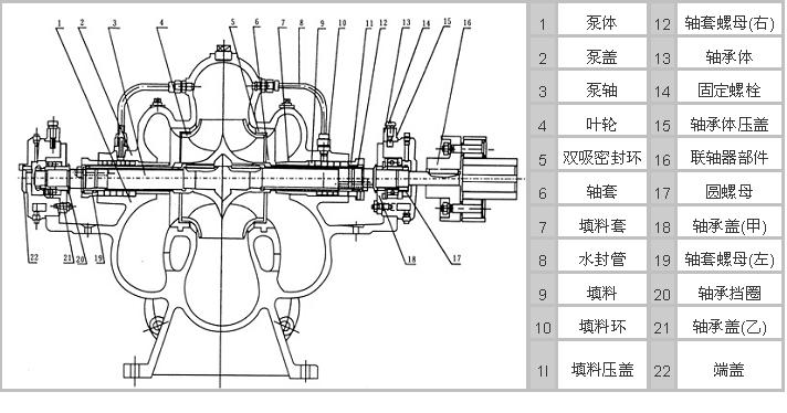 S型單級(jí)雙吸水平中開(kāi)式離心泵結(jié)構(gòu)說(shuō)明: